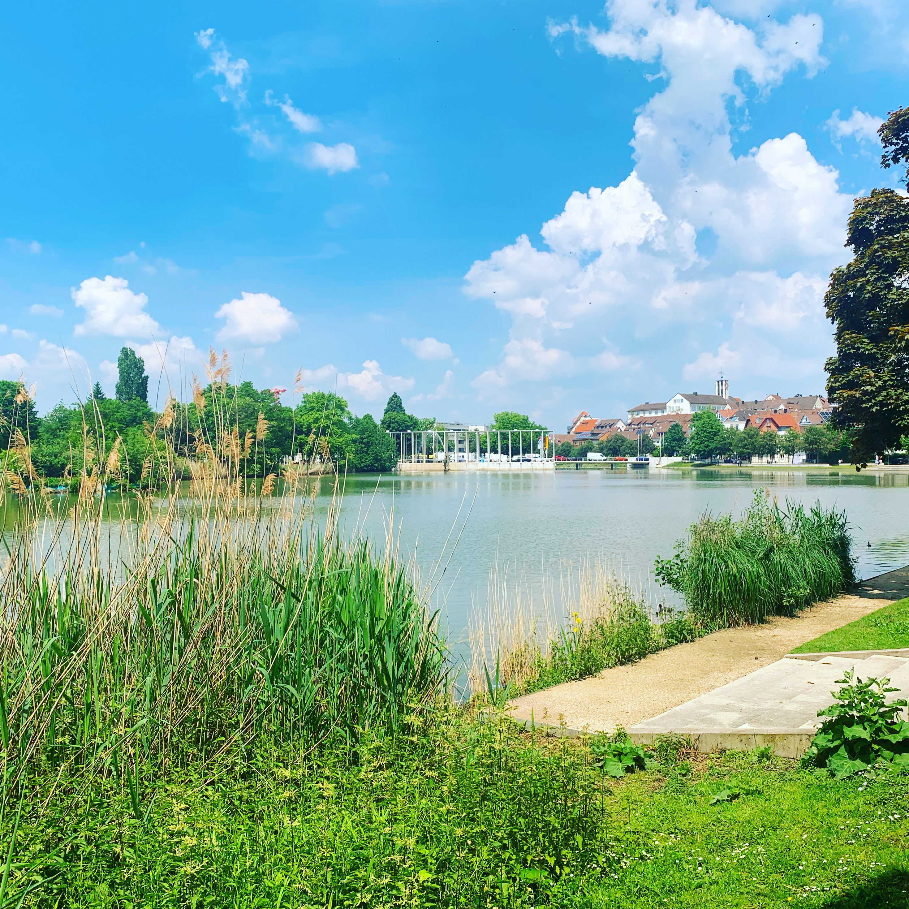 Every day, we get out to explore and our radius goes further and further. We haven’t taken the train yet, but there’s a lot to see just by walking around. We were pleased to find Böblingen Park only a few blocks away with a lake, trails, and various restaurants. It’s the perfect place to take Phoebe for a stroll after she arrives!