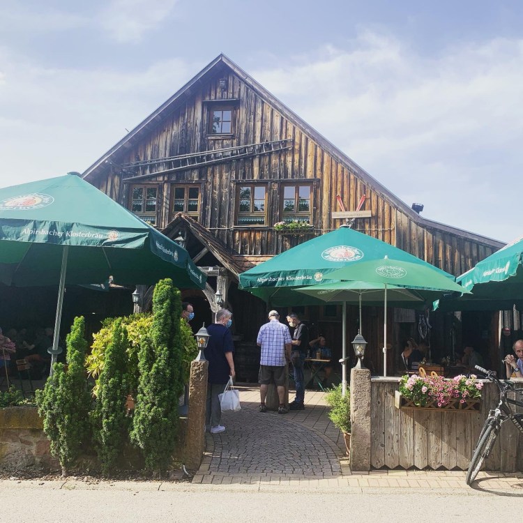 We got two of the last beers from a Black Forest brewery called Alpirsbacher Klosterbraeu and joked that there were beer fairies in these woods. Seriously! Can you imagine people trucking out the empty bottles and hauling in the filled ones as a community service?