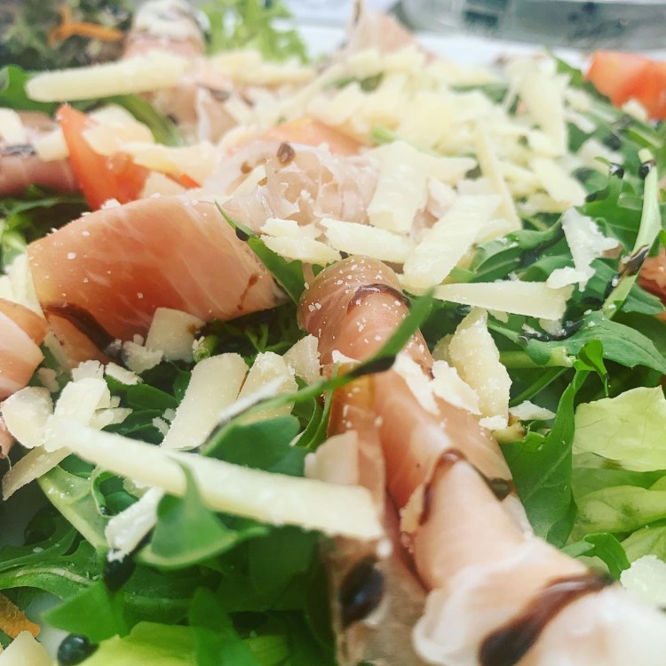 Herrenberg is about 30 km south of Stuttgart, right on the northern edge of the Schoenbuch forest (and ugh, my umlauts keep jacking up the text with a funky space – we’ll just have to deal with it for now). We arrived a bit hungry, so our first stop was at an Italian cafe in the village center. I got a cappuccino and a delicious salad of prosciutto and parmesan on a bed of arugula.