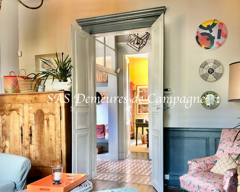 Like all the homes that caught my eye, the interior was absolutely divine. As I flipped through each of the extra photos the realtor sent my way, I was drawn to the details. Deep green tiles in one shower room with gold fixtures. Colorful furniture and art that popped against the refined blue hues on the walls and wainscoting. My hunch was that this was the home of another interior designer (like Katya from Bagnols-sur-Cèze) – and I was right! The realtor confirmed that the wife had spent a couple of years renovating this noble building as their forever home, and the only reason they were selling was because of divorce. Since they’d had no intention to move, they’d spent much more than they could get back out of the home. Even the new roof alone was over €100k! Meticulously renovated with no work to do but move in?